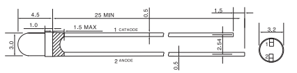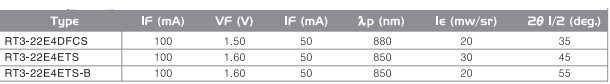 * 3 Ø, 2θ1/2 : 55° , λp: 850 nm , Ie : 20mW/sr @ 50mA