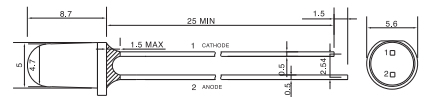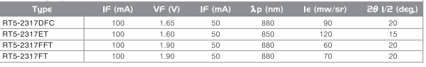 * 5 Ø, 2θ1/2 : 15° , λp: 850 nm , Ie : 120 mW/sr @ 50mA