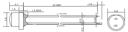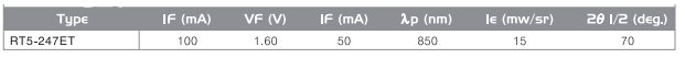 * 5 Ø, 2θ1/2 : 70° , λp: 850 nm , Ie : 15 mW/sr @ 50mA