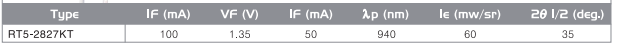* 5 Ø, 2θ1/2 : 30° , λp: 940 nm , Ie : 60 mW/sr @ 50mA