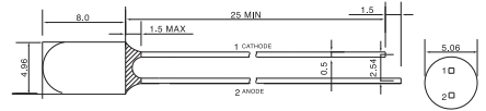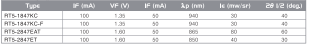 * 5 Ø, 2θ1/2 : 30° , λp: 850 nm , Ie : 40 mW/sr @ 50mA