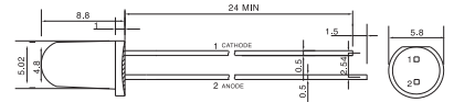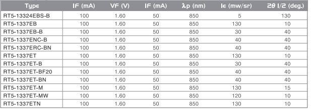 * 5 Ø, 2θ1/2 : 15° , λp: 850 nm , Ie : 130 mW/sr @ 50mA