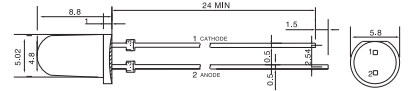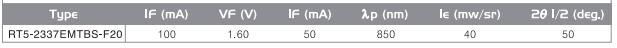 * 5 Ø, 2θ1/2 : 50° , λp: 850 nm , Ie : 40 mW/sr @ 100mA