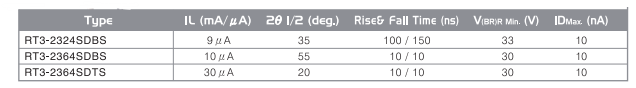 * PD , 2θ1/2 : 35° , λp : 900 nm , IL : 9 uA