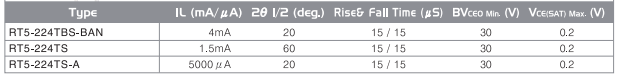* PT , 2θ1/2 : 70° , λp : 850 nm , IL : 7 uA